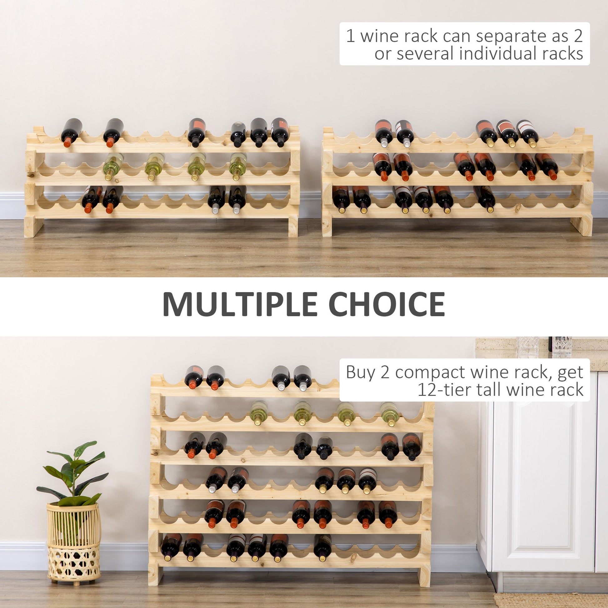 Elegant HOMCOM Six-Tier, 72 Bottle Wooden Wine Rack Set of 2 - Natural